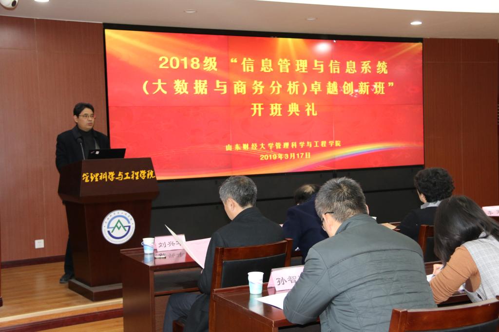 3月14日上午,公司首个创新实验班“信息管理与信息系统(大数据与商务分析)卓越创新班开班典礼在公司学术报告厅隆重举行,公司领导班子全体成员,各系主任副主任与25名脸上洋溢首自信、眼中闪烁着梦想的首届创新班成员一同出席了典礼。