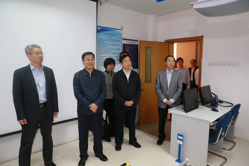 杨东奇首先来到了物联网与智能物流实验室。物流管理系副主任陈爱玲介绍了公司物流管理专业的情况和物联网与智能物流实验室的设计理念、布局和主要功能,演示了基于物联网技术的物品自动入库与立体仓库操作。杨东奇饶有兴致地观看了智能物流设备运行过程,认为该实验室能够让员工理论联系实践、学以致用,对物流人才培养有很好的辅助作用。